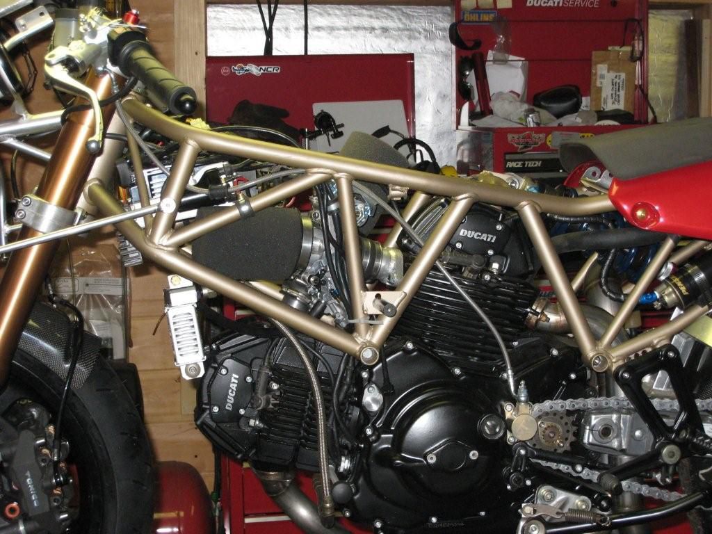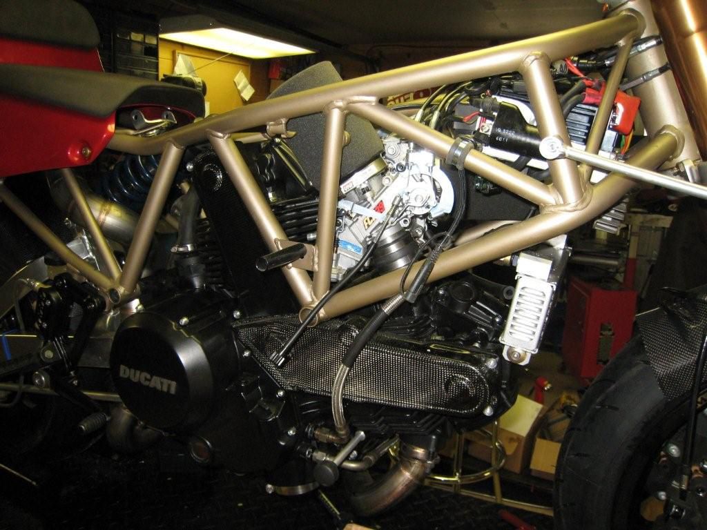 Engine;800cc Monster, hi comp pistons, porting by Bruce Myers, light flywheel,