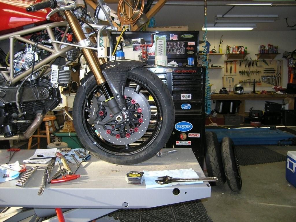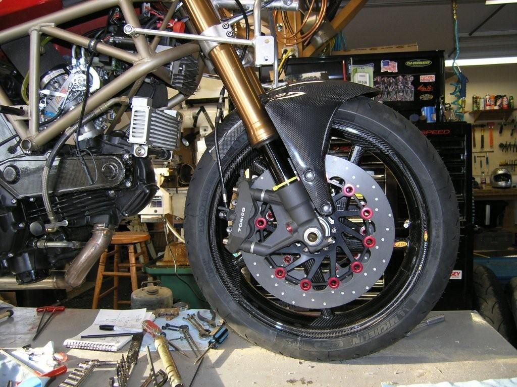 calipers and pads from GSXR. Racetech Axis rotors-iron. Brembo superbike master
