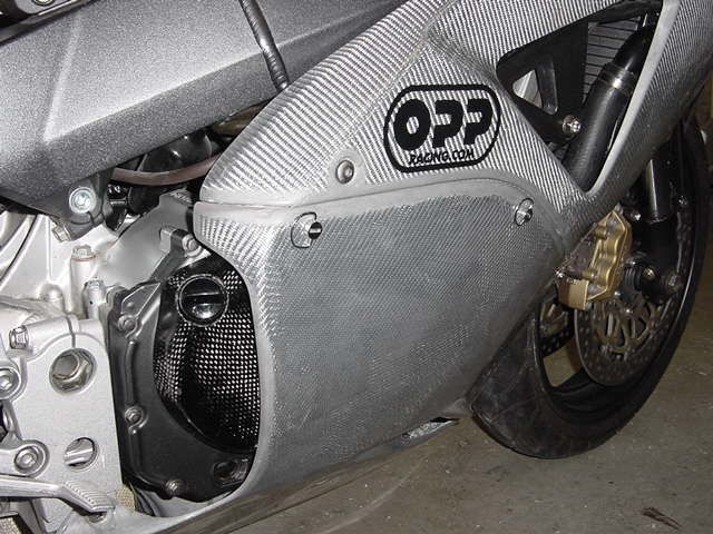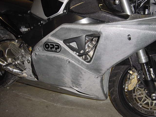 Description: OPP Titan upper and lower, header wrap,carbon front fender and OEM tailsection with Seat cover, Akrapovic Slipon Exhaust, Undertail, Lightech LED Signals. Arrow Steering Dampener.