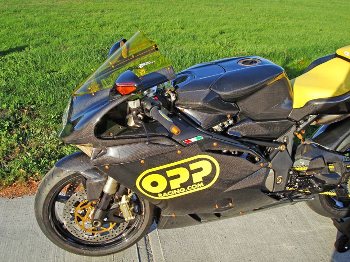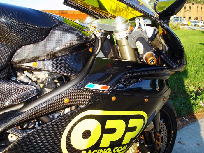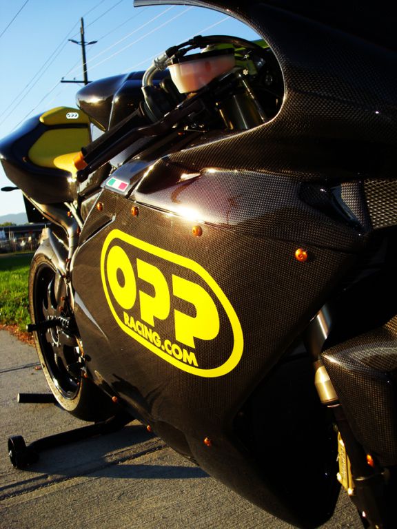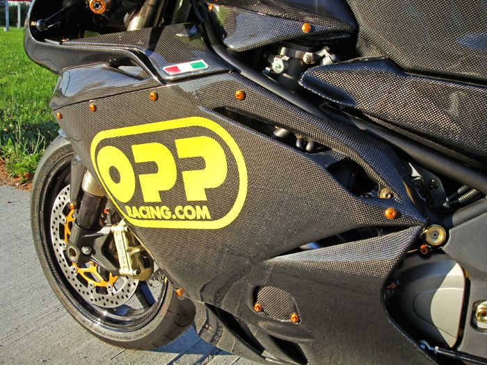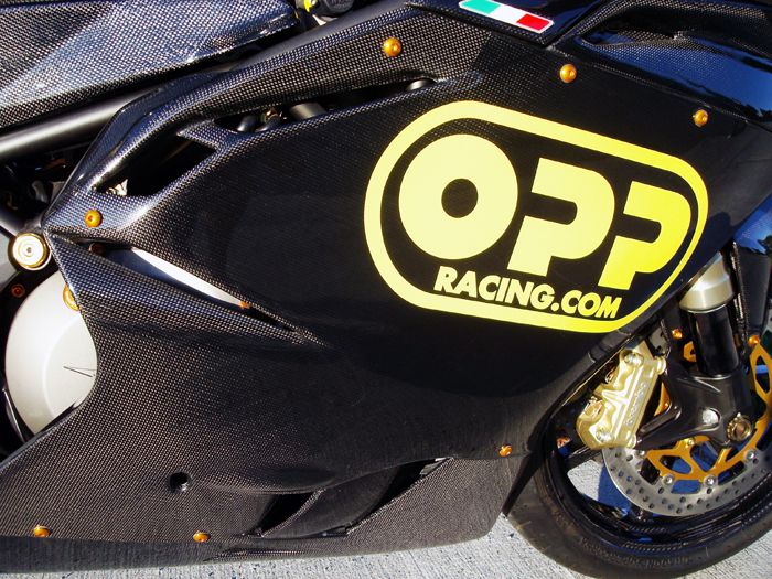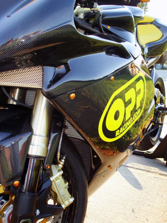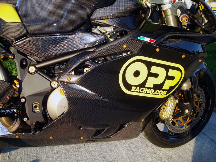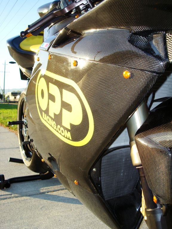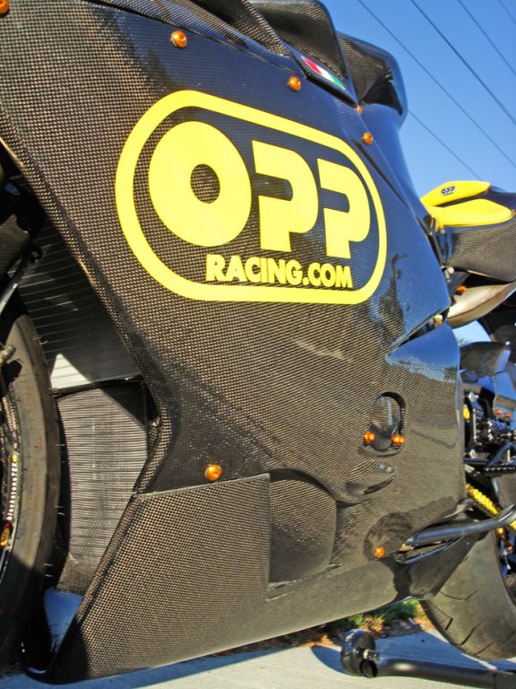 Featured on this bike is OPP Racings Elite Series line of carbon fiber products.