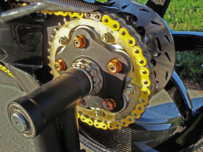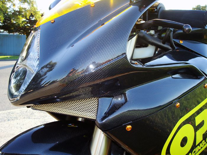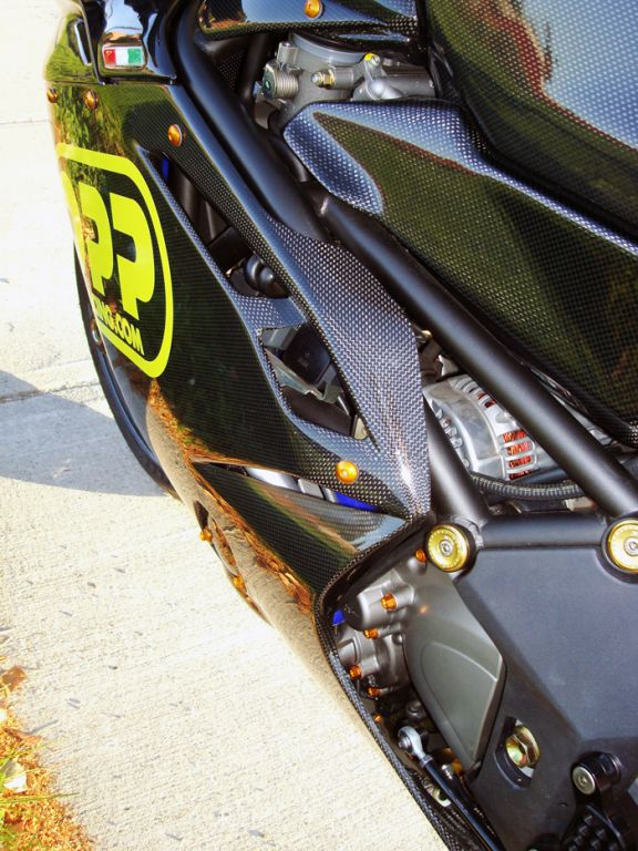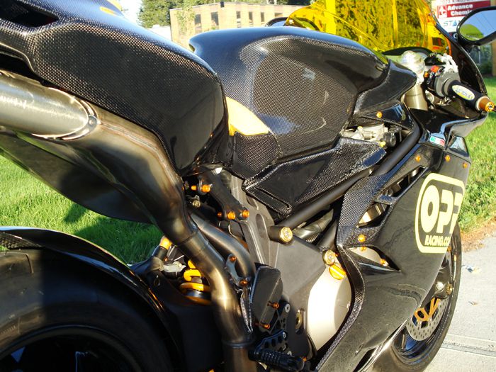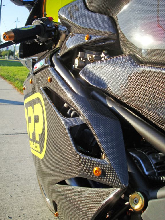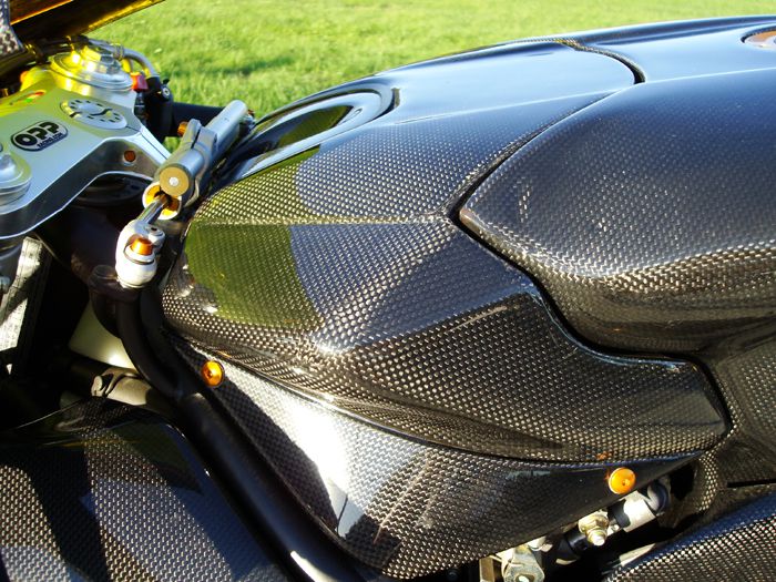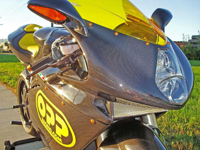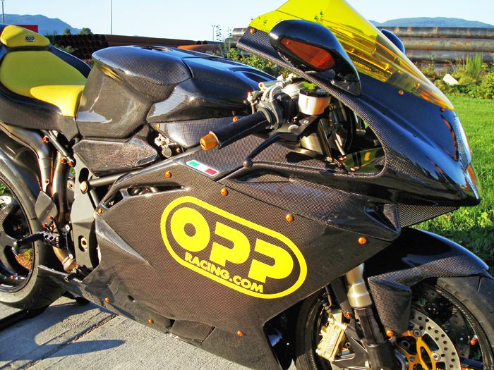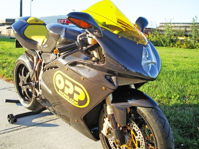 Featured on this bike is OPP Racings Elite Series line of carbon fiber products.